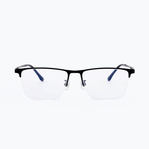 Gọng kính nửa viền với form chữ nhật nhã nhặn, tạo nên sự khác biệt rõ ràng và mạnh mẽ.