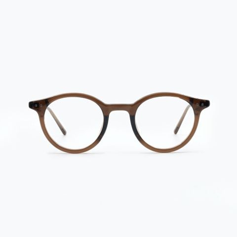 Gọng kính Tròn Cổ Điển (Round) với phần viền nhựa dày dặn, tạo sự chắc chắn và nổi bật. Điểm đặc trưng của mẫu này là chi tiết đinh tán kim loại nhỏ ở góc trên và càng kính, mang đến vẻ ngoài cá tính, mạnh mẽ pha chút retro rất ấn tượng. Đây là kiểu dáng vượt thời gian, phù hợp với nhiều phong cách.