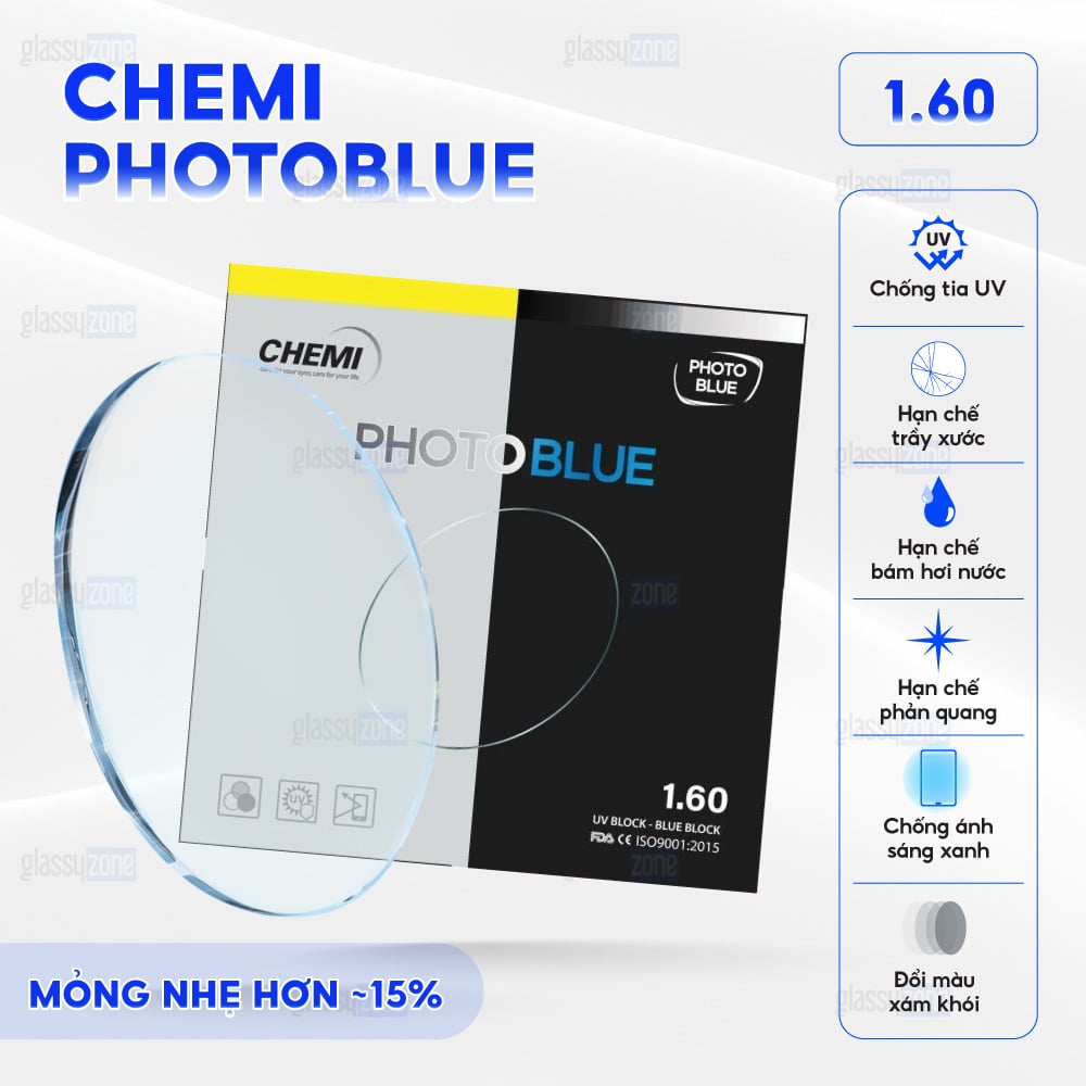 Tròng kính Chemi đổi màu kiểm soát ánh sáng xanh – 1.60 ASP PhotoBlue