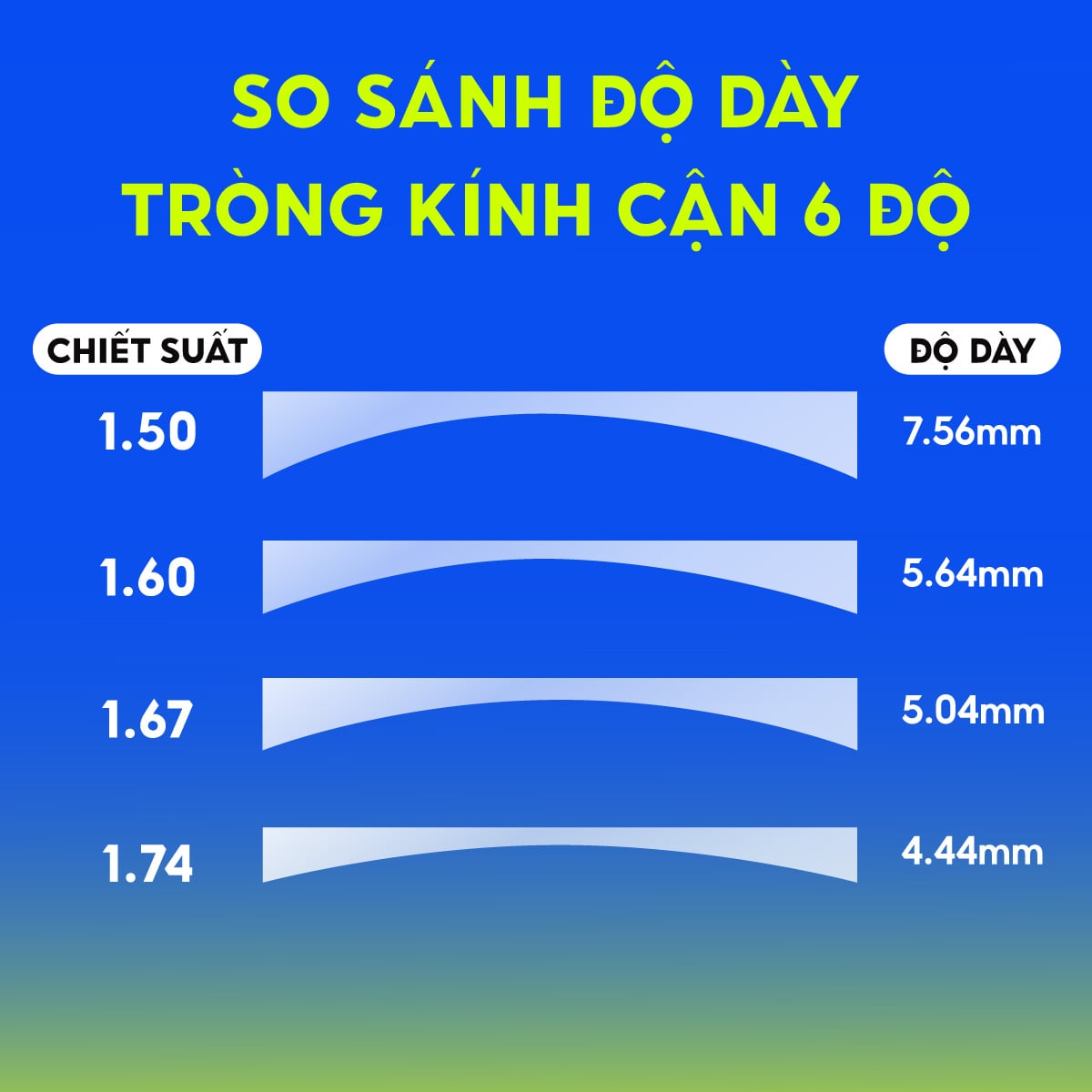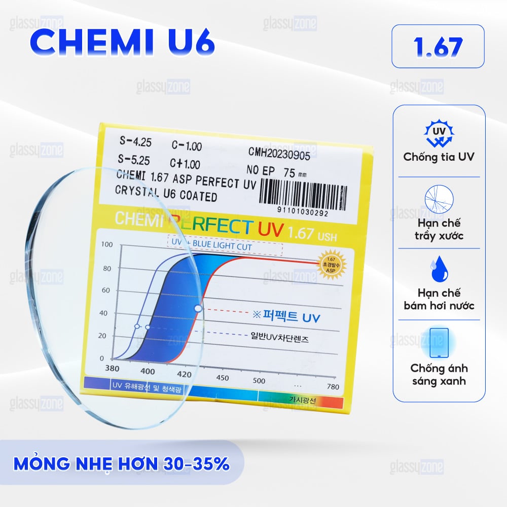 Thẩm Mỹ: Với độ mỏng nhẹ tròng kính Chemi U6 1.67 được khuyên dùng cho độ cận từ 5 đến 7 độ. Đối với những trường hợp có độ cận cao hơn, bạn nên tham khảo thêm tròng kính chemi u6 1.74 sẽ tối ưu độ mỏng cũng như giảm thiểu tình trạng thu nhỏ mắt nhất.